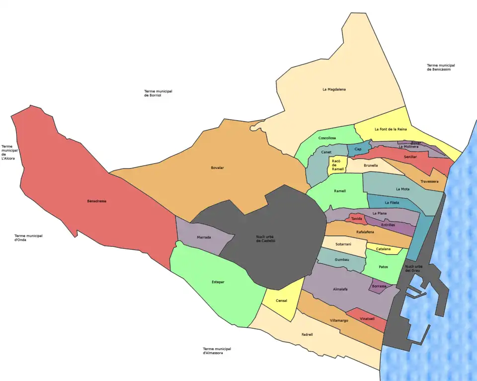 - ↑ a b c Ayuntamiento de Castellón (2011). «Partidas del término municipal». División de la ciudad. Ayuntamiento de Castellón. Consultado el 14 de enero de 2025.
