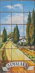 La primera vez que aparece este topónimo es en 1249 nombrando a una alquería. Su origen podría derivar del árabe /al-malla:ha/ que significa ‘salina’, sin embargo no se conoce la existencia de ningún terreno con esas características en Castellón. En esta partida se encontraba el pujolet de la Sal, y también parte de la tierra de esta zona es salitrosa por lo que Almalafa podría significar ‘saladar’ o ‘lagunazo en que se cuaja la sal’.[6] En 1251 aparece escrita como Almalaha, representando con una [ h ] la consonante aspirada de la que proviene la [ f ] valenciana.[7] También es conocida con el nombre de Malafa.