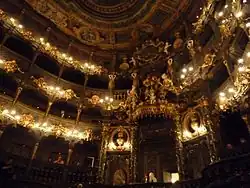 Construida entre 1744 y 1748 por Joseph Saint-Pierre, su interior fue diseñado por Giuseppe Galli Bibiena y su hijo Carlo di Bologna para la Princesa Guillermina de Prusia, en la ciudad de Bayreuth (Franconia) Es uno de los pocos teatros barrocos que sobreviven intactos y junto al Teatro de Cuvilliés de Múnich, el Teatro del Castillo de Český Krumlov y el de Drottningholm en Suecia considerados joyas del género. (UNESCO/BPI)[40]
