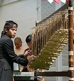 El angklung es un instrumento de música indonesio fabricado con cuatro tubos de bambú suspendidos en un marco de este mismo material y atados con cuerdas de rota. Un maestro artesano talla y recorta cuidadosamente los tubos para que emitan determinadas notas musicales cuando se sacude o golpea el marco de bambú. Cada angklung emite una nota o acorde único, de modo que para ejecutar melodías es preciso que varios intérpretes toquen juntos. El angklung tradicional utiliza la escala pentatónica, pero en 1938 el músico Daeng Soetigna creó el llamado angklung padaeng, que utiliza la escala diatónica. Íntimamente vinculada a las costumbres tradicionales, el arte y la cultura de Indonesia, la música del angklung se interpreta en las ceremonias de circuncisión, plantación del arroz y recogida de cosechas. El bambú negro especial con que se fabrica el angklung se tala durante las dos semanas del año en que cantan las cigarras, procurando cortarlo a tres segmentos de distancia del suelo como mínimo para permitir que sus raíces se sigan extendiendo. La enseñanza del manejo del angklung se suele transmitir oralmente de generación en generación, aunque se está impartiendo cada vez más en los centros escolares. Teniendo en cuenta que la música del angklung debe ejecutarse en colaboración, debido a la índole de este instrumento, su práctica propicia la cooperación y el respeto mutuo entre los músicos, y fomenta la disciplina, la responsabilidad, la concentración, la imaginación, la memoria y el sentido artístico y musical. (UNESCO/BPI)