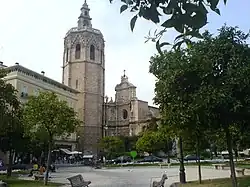 Su torre campanario es conocida como "El Miguelete". La construcción de la Torre se inicia en 1381 y finaliza en 1429. Debido a su complejidad, fue dirigida por varios maestros de obra, siendo el primero Andrés Juliá, desde 1381, y los siguientes, entre otros, José Franch (1396), Pedro Balaguer (1414, constructor de las Torres de Serranos) hasta Martín Llobet (1425), el último de los arquitectos que intervino en la construcción. Posteriormente se construye la espadaña (1660 - 1736).