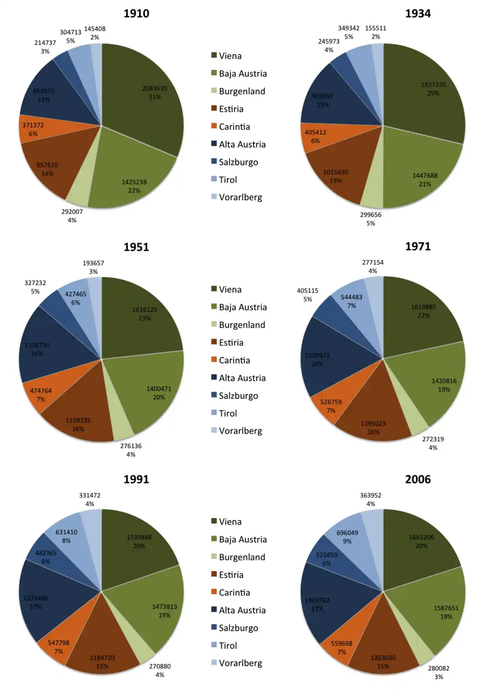 Las poblaciones se refieren a los territorios posteriores a la Segunda Guerra Mundial de los estados austríacos.