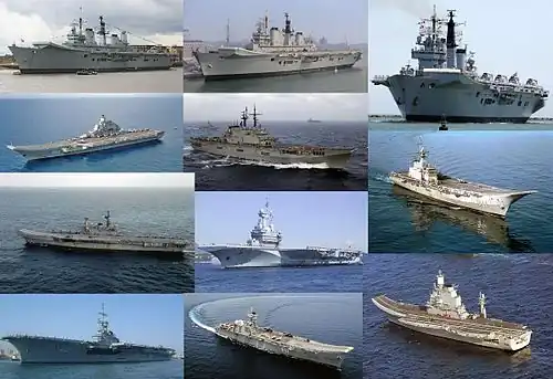 - NAe São Paulo: Clase Clemenceau ex-Foch francés, en servicio desde 2000 hasta 2017[6]. Hundido en 2023[7].