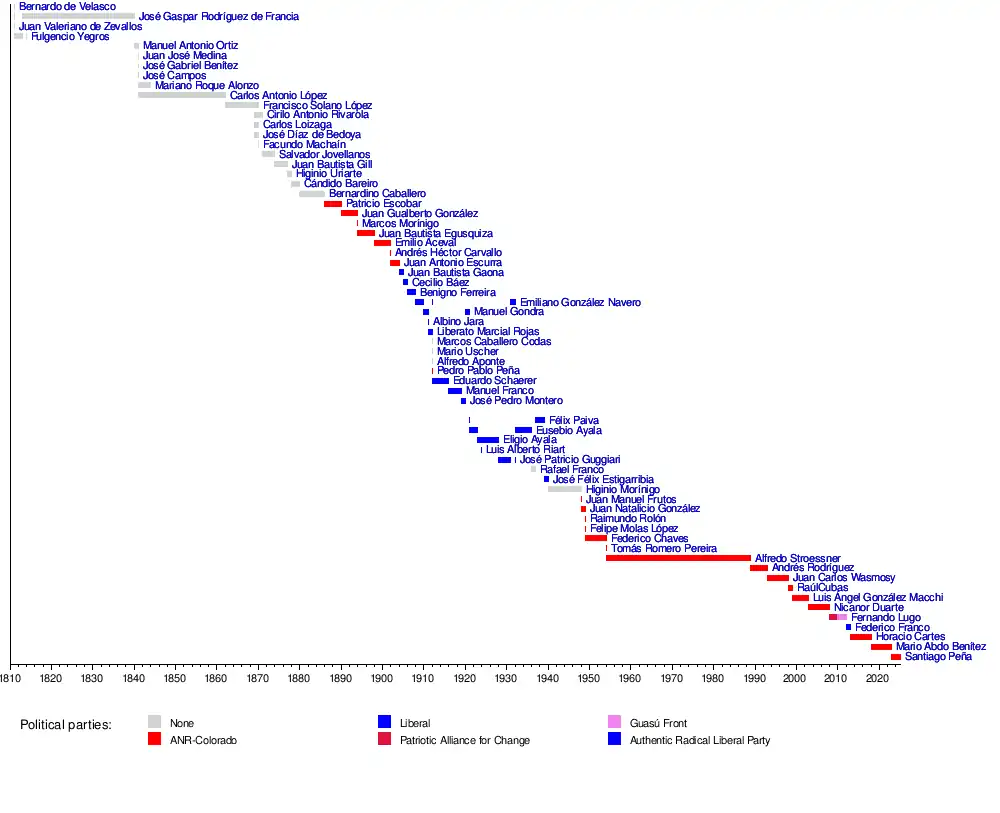 Línea de tiempo de presidentes de Paraguay desde 1810