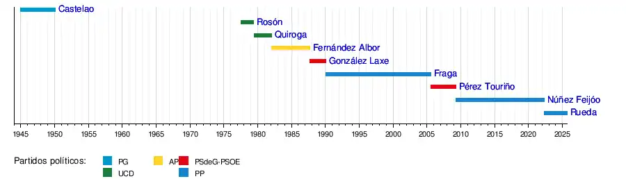 - ↑ a b Galicia, Xunta de (2 de julio de 2022). «Todos os presidentes da Xunta de Galicia». Xunta de Galicia (en gallego). Consultado el 17 de diciembre de 2023.