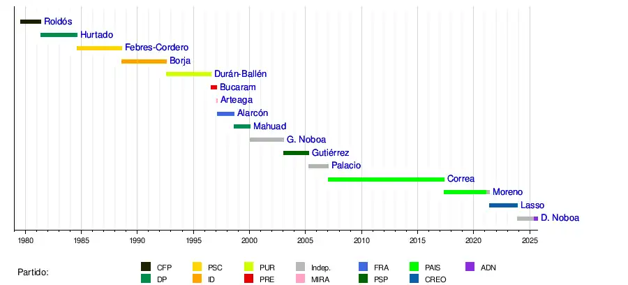 - ↑ «Ecuador: Heads of State: 1944-2018 - Archontology.org». www.archontology.org (en inglés). Consultado el 28 de febrero de 2018.