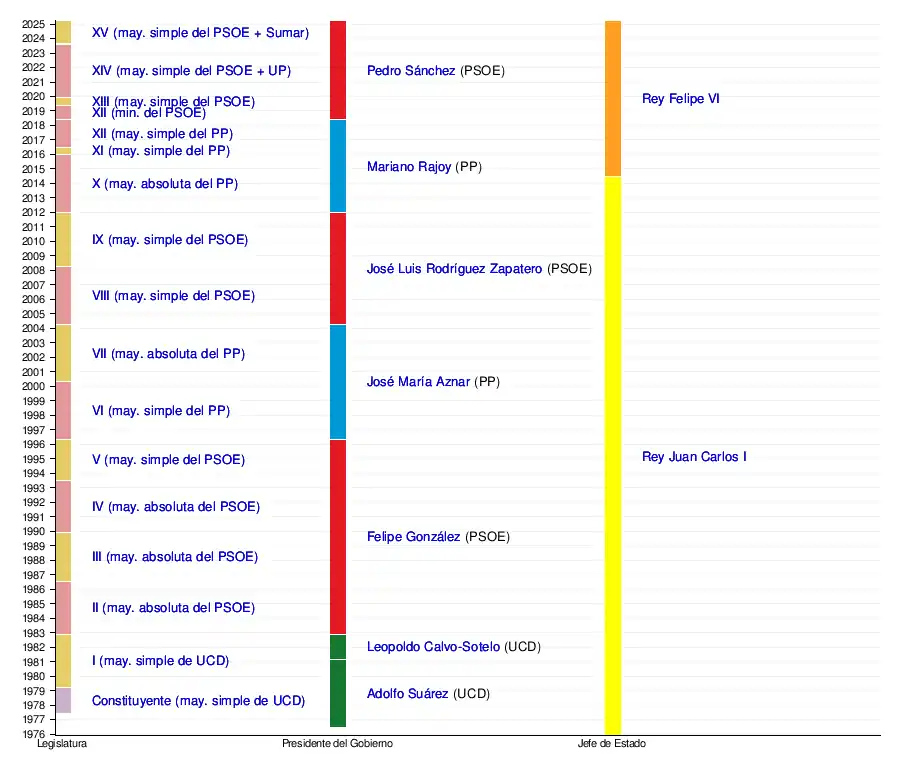 Adolfo Suárez (UCD) | 5 de julio de 1976, tras designación real[d] | 4 años, 7 meses y 21 días | ||||