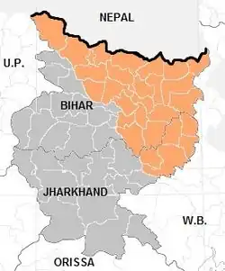 Mithila es un estado propuesto que cubriría las regiones de habla maithili ubicadas en el norte y este de Bihar y el nordeste de Jharkhand. Hay 24 distritos de habla maithili en Bihar: Araria, Begusarai, Bhagalpur, Banka, Darbhanga, Purba Champaran, Katihar, Khagaria, Kishanganj, Madhepura, Madhubani, Muzaffarpur, Purnia, Saharsa, Samastipur, Sheohar, Sitamarhi, Supaul, Vaishali, Pashchim Champaran, Munger, y Jamui. Hay seis distritos de habla maithili en Jharkhand: Deoghar, Dumka, Godda, Jamtara, Pakaur y Sahebganj. No hay consenso en la propuesta sobre una capital, aunque se han sugerido Darbhanga, Muzaffarpur, Purnia y Begusarai como ciudades candidatas para la capitalidad.[37]