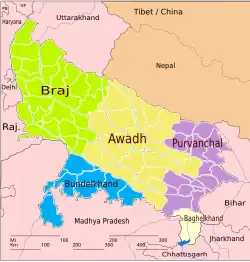 - ↑ «Congressmen demand separate Purvanchal, Bundelkhand States». Chennai, India. 7 de marzo de 2005.