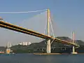 Colgante y Atirantado | 2008 | Guangzhou | Autopista | Dos puentes combinados: uno colgante y otro atirantado. El pilón más alto corresponde al atirantado; las del puente colgante alcanzan los 190,48 m. | ||