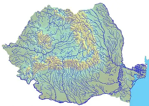 El río Danubio es con diferencia el más importante de todos los ríos que discurren por Rumania, y también es el que tiene un recorrido más largo en el país (1.075 km). El río de mayor longitud exclusivamente en territorio rumano es el río s (sus km discurren totalmente en Rumania).
