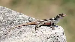 Largartos: Anguidae · Corytophanidae · Dactyloidae · Gekkonidae · Iguanidae · Leiocephalidae · Phrynosomatidae · Polychrotidae · Scincidae · Teiidae · Gymnophthalmidae · Xantusiidae |