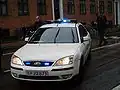 Vehículo policial V-3 Señaliza un vehículo de esta clase en servicio no urgente. Estará constituida por una rotulación, reflectante o no, en los costados del vehículo, que incorpora la denominación del cuerpo policial y su imagen corporativa. |