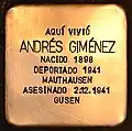 AQUÍ VIVIÓ ANDRÉS GIMÉNEZ NACIDO 1898 DEPORTADO 1941 MAUTHAUSEN ASESINADO 2.12.1941 GUSEN |
