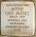 EN LA CAMPANA VIVIÓ ANTONIO CARO JIMENEZ NACIDO 1917 DEPORTADO 1941 MAUTHAUSEN ASESINADO 14.3.1942 STEYR |