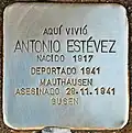 AQUÍ VIVIÓ ANTONIO ESTÉVEZ NACIDO 1917 DEPORTADO 1941 MAUTHAUSEN ASESINADO 29.11.1941 GUSEN |