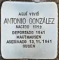 AQUÍ VIVIÓ ANTONIO GONZÁLEZ NACIDO 1913 DEPORTADO 1941 MAUTHAUSEN ASESINADO 13.11.1941 GUSEN |
