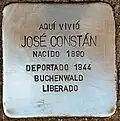 AQUÍ VIVIÓ JOSÉ CONSTÁN NACIDO 1890 DEPORTADO 1944 BUCHENWALD BEFREIT |