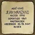 AQUÍ VIVIÓ JUAN MANZANO NACIDO 1910 DEPORTADO 1941 MAUTHAUSEN ASESINADO 22.11.1941 GUSEN |