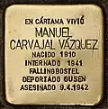 IN CÁRTAMA VIVIÓ MANUEL CARVAJAL VÁZQUEZ NACIDO 1910 INTERNADO 1941 FALLINGBOSTEL DEPORTADO GUSEN ASESINADO 9.4.1942 |