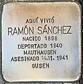 AQUÍ VIVIÓ RAMÓN SÁNCHEZ NACIDO 1898 DEPORTADO 1940 MAUTHAUSEN ASESINADO 14.11.1941 GUSEN |