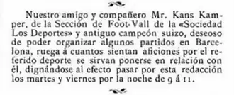 - ↑ Los Deportes. Barcelona, Año III n.41 p.1079 (10 de diciembre de 1899)