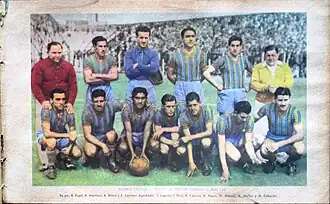 Parados: Pedro Perucca, Juan Martínez, Justo Lescano y Armando Ríos.; hincados: Salvador Laporta, Ignacio Díaz, Ricardo Cisterna, Harry Hayes (h), Miguel Allende, Aníbal Maffei, Humberto Coloccini. | |||