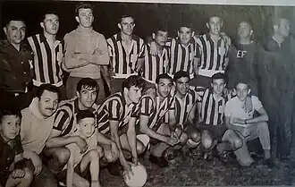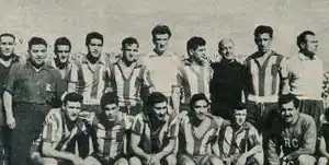 ![]() Parados: Juan Alfonso Lombardi, José Minni, Carlos Álvarez, Juan Carlos Bertoldi, Néstor Lucas Cardoso, Rodolfo Más (preparador físico), Miguel La Rosa, Juan Piotto (entrenador); hincados: Oscar Mottura, Hugo Rivero, Miguel Antonio Juárez, Juan Castro, Ricardo Giménez. | ||||