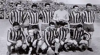 ![]() Parados: Juan Lombardi, Néstor Cardoso, José Minni, Juan Bertoldi, Carlos Álvarez, Miguel La Rosa; hincados: Alberto Sánchez, Hugo Rivero, Osvaldo Colla, Juan Castro, Ricardo Giménez. | |||