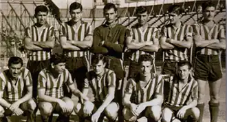 ![]() Parados: José Casares, Domingo Aranda, Edgardo Andrada, Néstor Manfredi, Gualberto Muggione, Roque Palacios; hincados: Miguel Antonio Juárez, Alejandro Báez, Marcelo Pagani, Jorge Westcha, Ricardo Giménez. | ||||
