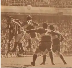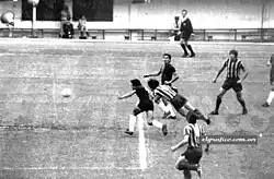 Imagen de la derrota ante Boca el 17 de agosto; Poy cabecea ante varios rivales.