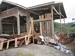 Desde abajo a arriba, de derecha a izquierda: Una iglesia destruida en Filipinas por el Terremoto de Bohol de 2013 • Una vivienda dañada en Indonesia por el Terremoto de Aceh de 2013 • Viviendas totalmente destruidas en Irán por el Terremoto en Bushehr de 2013 • Una isla devastada en Islas Salomón por el Terremoto de las Islas Salomón de 2013 • Deslizamientos de rocas en Taiwán por el Terremoto de Nantou de 2013. | ||