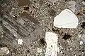 | Norita | Plagioclasa y piroxeno | Roca plutónica de grano grueso equivalente al gabro, pero con gran abundancia de hiperestena, que también se encuentra en la Luna.[64][65] | |