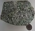 | Epidosita | Epidota y cuarzo | Roca producto del metamorfismo de distintas clases de rocas, como areniscas, calizas, epidioritas o anfibolitas.[97] | |