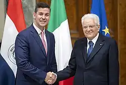 - ↑ «Santiago Peña se reúne con el presidente de Italia y con paraguayos en Roma». swissinfo.ch. 28 de noviembre de 2023. Consultado el 20 de mayo de 2024.