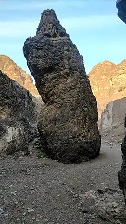 Wadi Al Himriyyah - Ras al Jaima (EAU) - Al Himriyyah Rock. Gran monolito a la salida de una estrecha garganta que forma en ese punto el Wadi Al Himriyyah