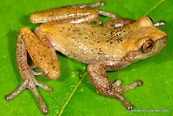 - ↑ a b Catenazzi, A. and P. Venegas. 2012. Anfibios y Reptiles, pp. 106-117, in: N. Pitman, E. Ruelas, D. Alvira, C. Vriesendorp, D. Moskovits, A. del Campo, T. Wachter, D. Stotz, S. Noningo, E. Tuesta & R. Smith (eds). Perú: Cerros de Kampankis. Rapid Biological and Social Inventories Report 24. Chicago: The Field Museum.