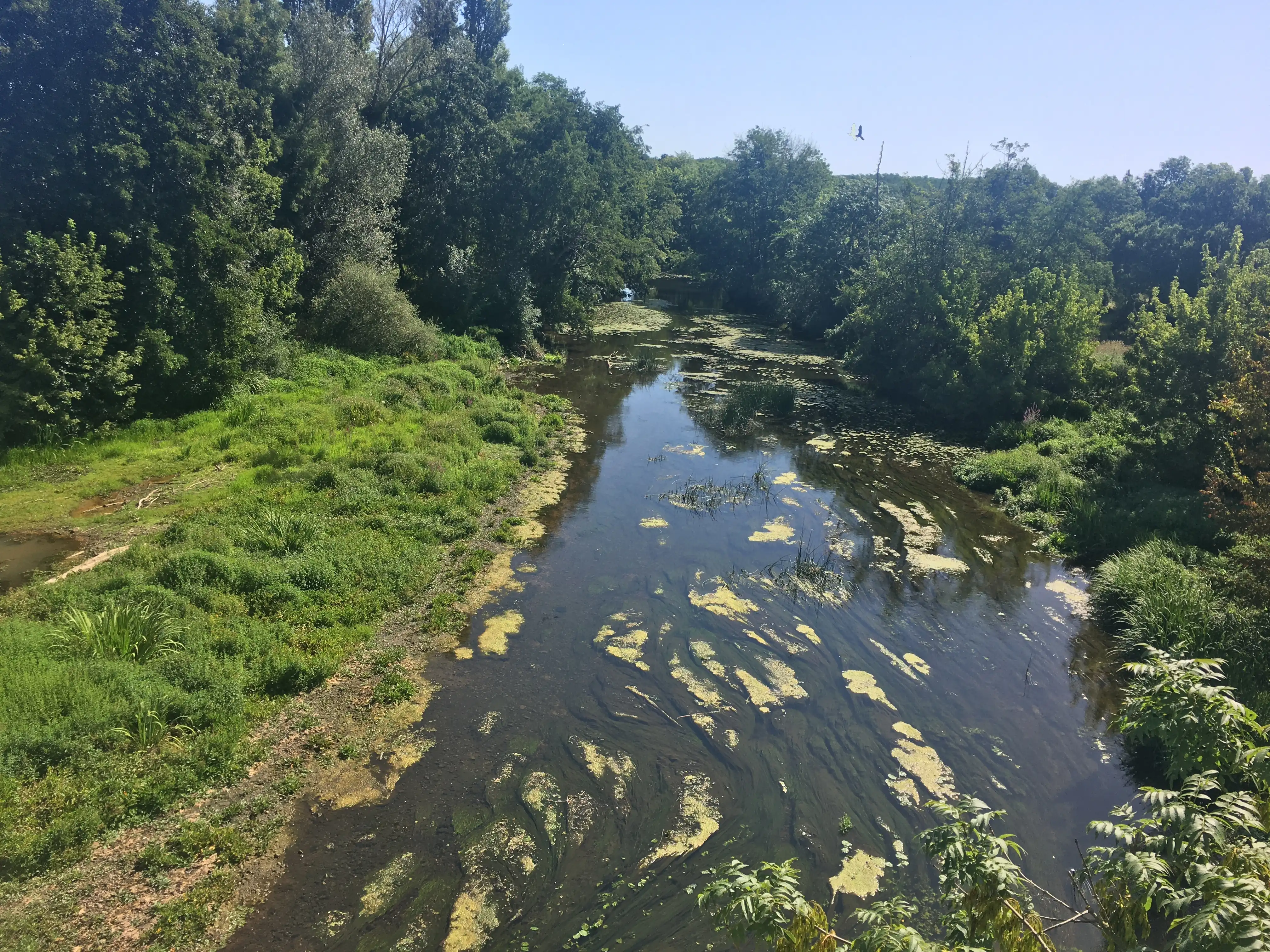 Fluye por diecisiete comunas, entre ellas Chalais, Angles-sur-l'anglin, Ingrandes y catorce más en tres departamentos, en dos regiones distintas. No pasa por ninguna ciudad de más de quince mil habitantes.