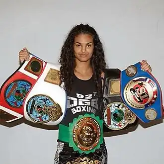 - ↑ «World Professional MuayThai Federation Female World Flyweight Title». titlehistories.com. Consultado el 5 de junio de 2020.