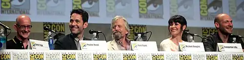 - Michael Douglas como Hank Pym: Un exagente de S.H.I.E.L.D.,[46] entomólogo y físico que se convirtió en el Ant-Man original en 1963 luego de descubrir las partículas subatómicas que posibilitan la transformación. Más adelante es mentor de Lang para que asuma el papel.[10][11][24][47] Douglas comparó su decisión de unirse a una película de superhéroes con su papel en Behind the Candelabra, diciendo, "A veces —como [cuando] no te ven como Liberace— hay que sacudirlos un poco y divertirse un poco."[48] Al describir a Pym, Douglas dijo, "Es un tipo formal del norte de California. Ha perdido el control de su compañía. Vive en una especie de distorsión temporal. Siempre fue un poco chapucero. Tiene un laboratorio, más muchas otras cosas, en su sótano de las que nos enteramos. Sin dudas está amargado por lo que pasó con su compañía y muy asustado de qué deparará el futuro, porque él mismo, luego de haberse encogido tantas veces, es difícil. Busca e intenta encontrar a alguien con quien pueda trabajar y que tenga las características correctas, que es [Scott]."[20] Douglas indicó que no usaría el traje de Ant-Man.[49]