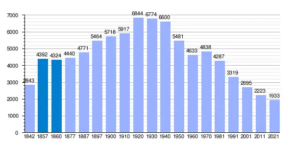 | Gráfica de evolución demográfica de Antas de Ulla[5] entre 1842 y 2021 |