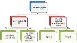 - Tipo B. No tienen actividad de anticoagulante lúpico pero igualmente reconocen la cardiolipina cuando la β2-glicoproteína I está presente.[12]