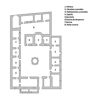 En la actualidad, el edificio del siglo XVIII se conserva con muy pocas modificaciones. La fachada es austera, carente de ornamentación en las paredes, salvo los umbrales de puertas y ventanas hechos de piedra y un portal con columnas cilíndricas de cantera y vigas de madera. Las puertas y ventanas están hechos de madera con rejas de hierro, como era típico de la arquitectura novohispana de la época. La cornisa del edificio está ornada con arcos invertidos coronados por almenas, dos de las cuales son representaciones de coyotes. Sobre la entrada principal se encuentra una talla en cantera del escudo concedido a Coyoacán por el rey Carlos IV de España.