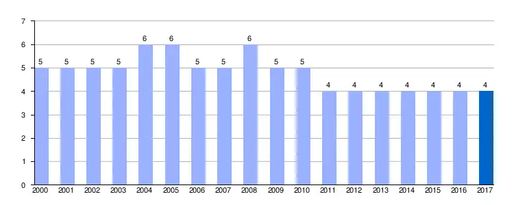 | Gráfica de evolución demográfica de Aostri de Losa entre 2000 y 2017 |