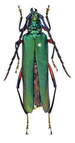 - ↑ a b c d e «Aphrodisium tricoloripes». Instituto de Investigación para el Desarrollo - Base de données Titan sur les Cerambycidés ou Longicornes (en francés). Consultado el 29 de julio de 2022.