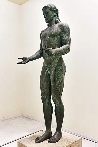 - ↑ a b c Steinhauer, Georgios (2007). “The Piraeus bronze statues”, in Valavanis, Panos [et.al], Great Moments in Greek Archaeology. (en inglés). Los Ángeles. p. 328.
