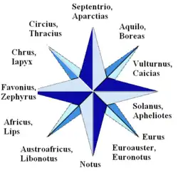 Un nombre alternativo, utilizado más raramente para el viento del norte, es el de Septentrio, una palabra derivada de septem triones ("siete bueyes"), por referirse a las siete estrellas que se destacan en el norte, en la constelación de la Osa Mayor.
