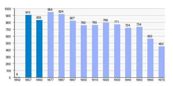 | Gráfica de evolución demográfica de Arañó[3] entre 1842 y 1970 |