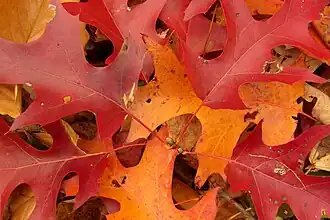 ![]() Las hojas de Quercus coccinea en otoño. | ||