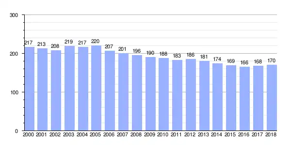 | Gráfica de evolución demográfica de Arceo (parroquia) entre 2000 y 2018 |